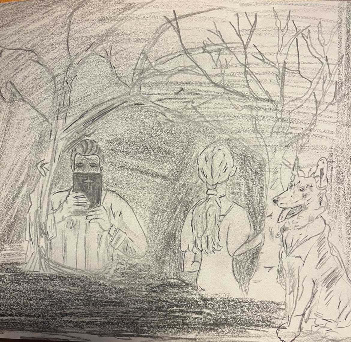 Well, me and “O”, my soul’s waggin’ tail! My dog. A beast, fetched up to the steps of our porch seven seasons ago. My O, brimmin’ with youth and potent. A bold storm of cloudy fur, cradlin’ emerald eyes and fangs of light, which O never bears.